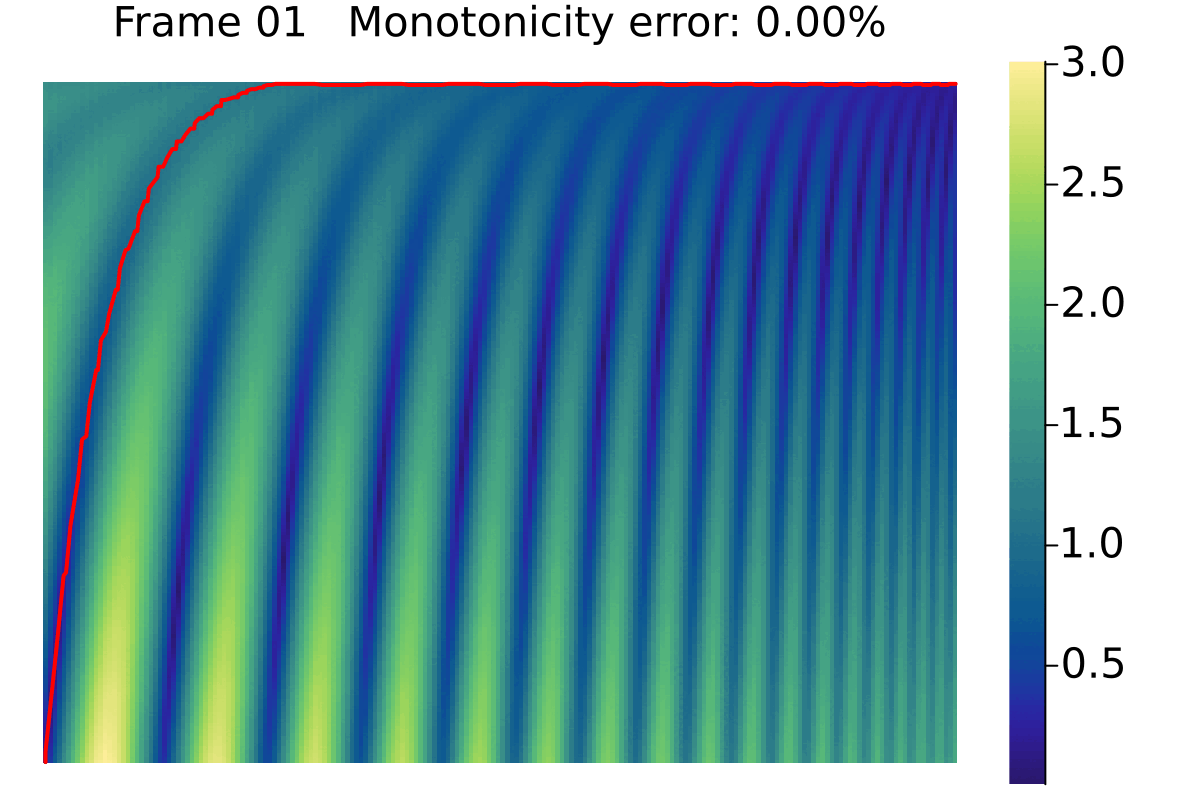 By introducing vertices in the middle of parts of the curves that are being traversed in the wrong direction, one can refine the solution, till effectively reaching the optimal monotone solution. This process is demonstrated below. As one can see, the error is negligible after a few (say four) iterations. After that, it becomes a bit pointless.