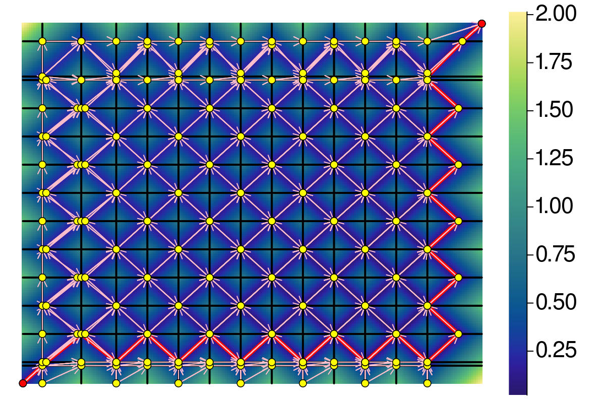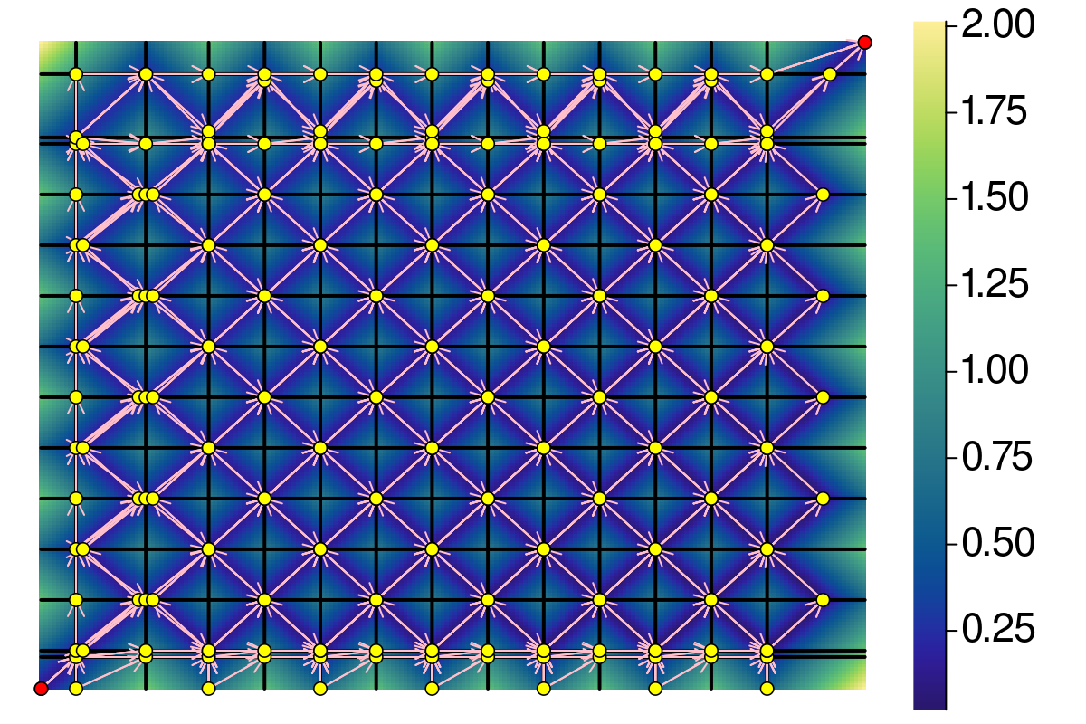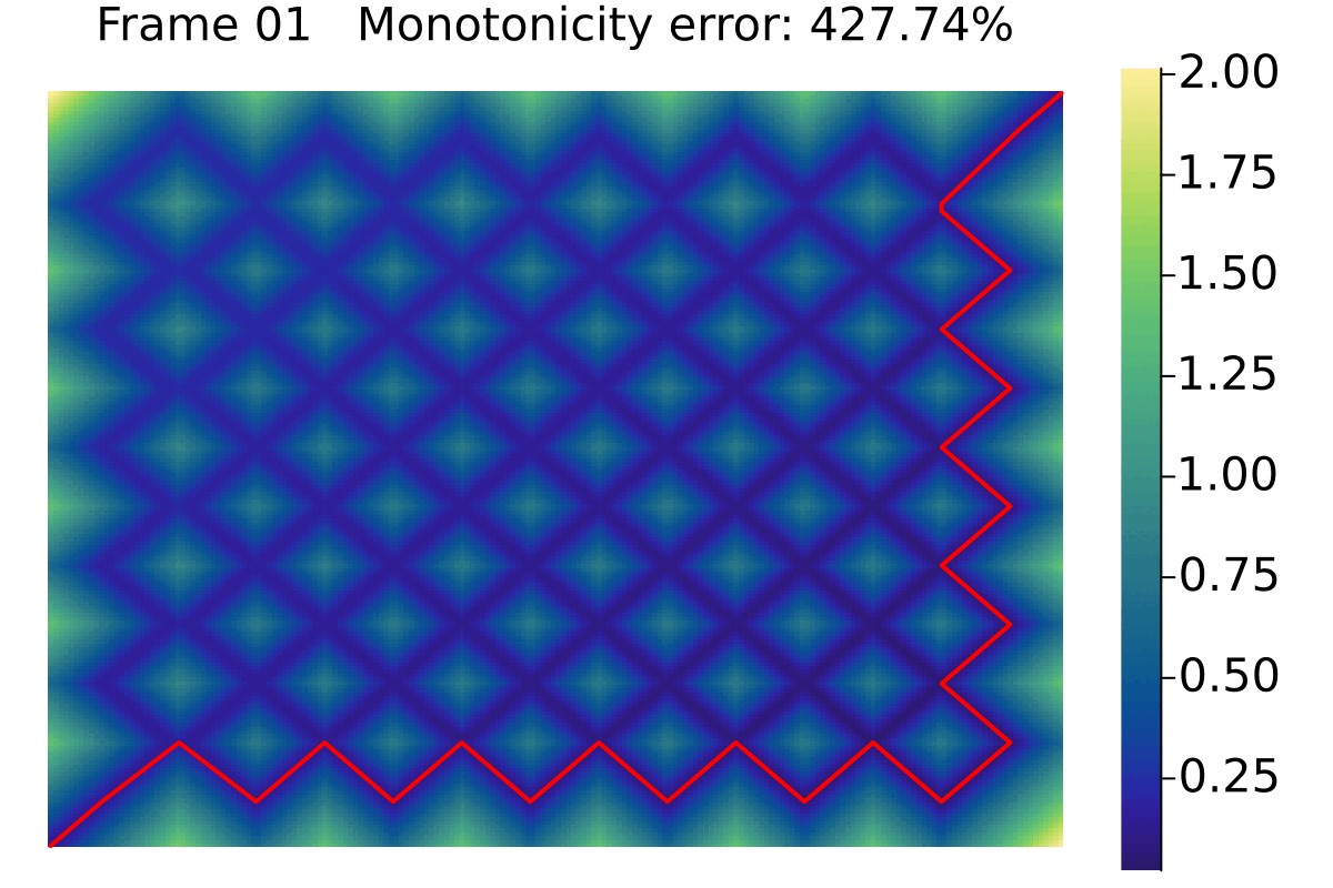 By introducing vertices in the middle of parts of the curves that are being traversed in the wrong direction, one can refine the solution, till effectively reaching the optimal monotone solution. This process is demonstrated below. As one can see, the error is negligible after a few (say four) iterations. After that, it becomes a bit pointless.