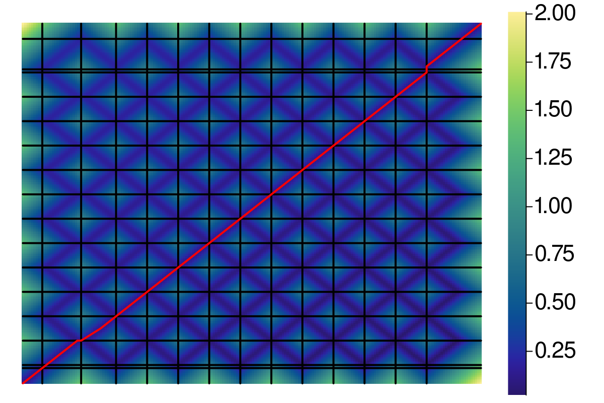 By introducing vertices in the middle of parts of the curves that are being traversed in the wrong direction, one can refine the solution, till effectively reaching the optimal monotone solution. This process is demonstrated below. As one can see, the error is negligible after a few (say four) iterations. After that, it becomes a bit pointless.